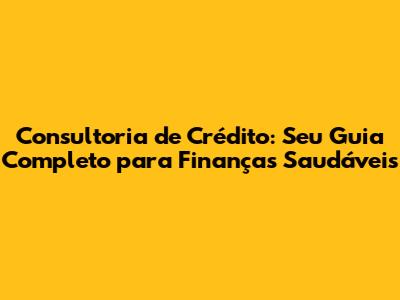 Consultoria De Crédito: Seu Guia Completo Para Finanças Saudáveis