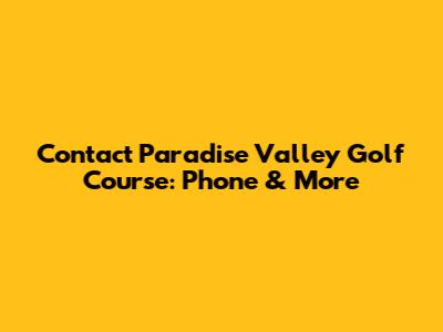 Contact Paradise Valley Golf Course: Phone & More