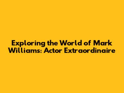 Exploring The World Of Mark Williams: Actor Extraordinaire