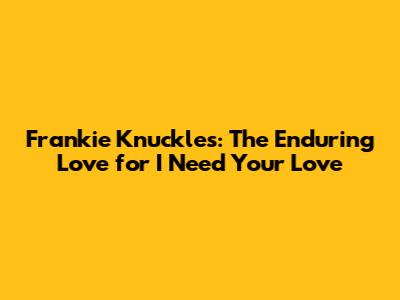 Frankie Knuckles: The Enduring Love For 'I Need Your Love'