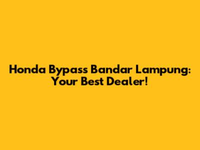 Honda Bypass Bandar Lampung: Your Best Dealer!