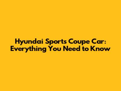 Hyundai Sports Coupe Car: Everything You Need To Know