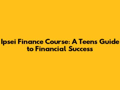 Ipsei Finance Course: A Teen's Guide To Financial Success