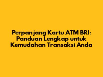 Jadi, jangan tunda-tunda lagi ya, guys. Segera perpanjang kartu ATM BRI kalian sebelum masa berlakunya habis. Dengan begitu, kalian bisa terhindar dari masalah dan tetap nyaman dalam bertransaksi.